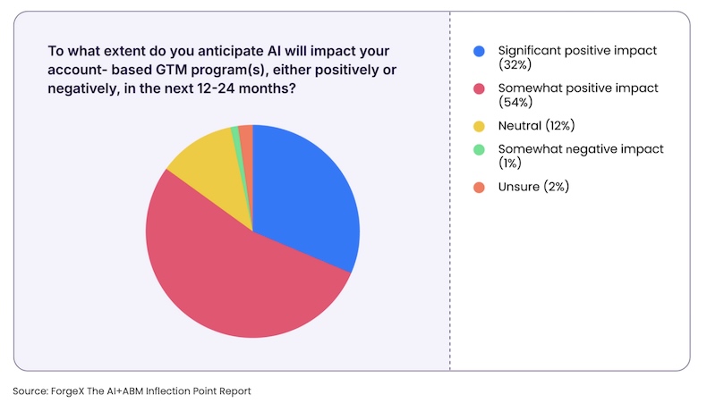Fully 86% of respondents say AI will have a positive impact on their account-based GTM programs in the next 12-24 months.