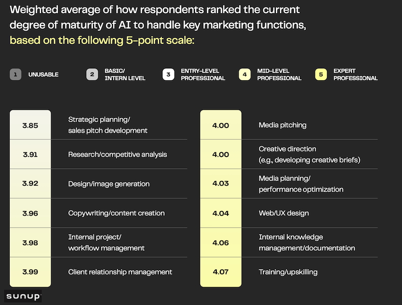 Agency leaders say AI is currently most mature at handling training/upskilling, internal knowledge management/documentation, and web/UX design.
