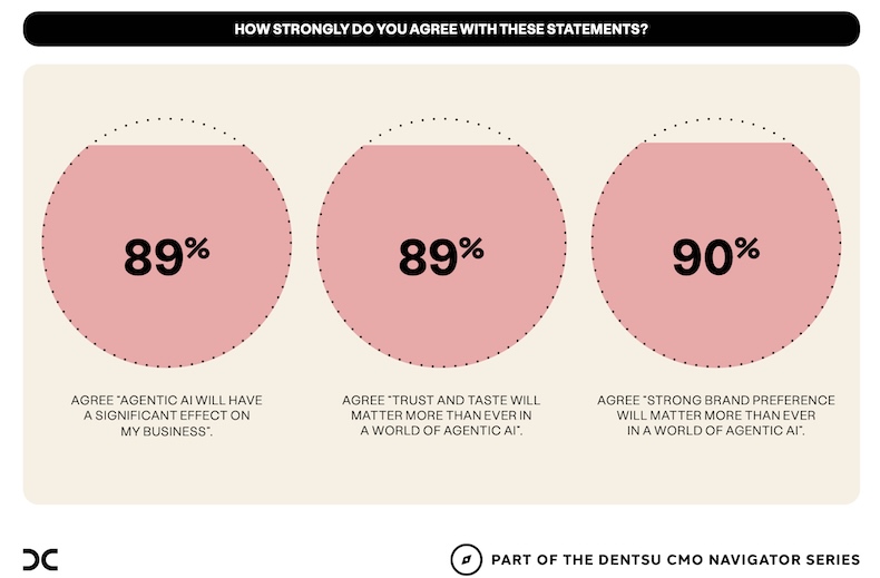 Some 89% of respondents agree that agentic AI will have a significant impact on their business and 90% agree that strong brand preference will matter more than ever in a world of agentic AI.