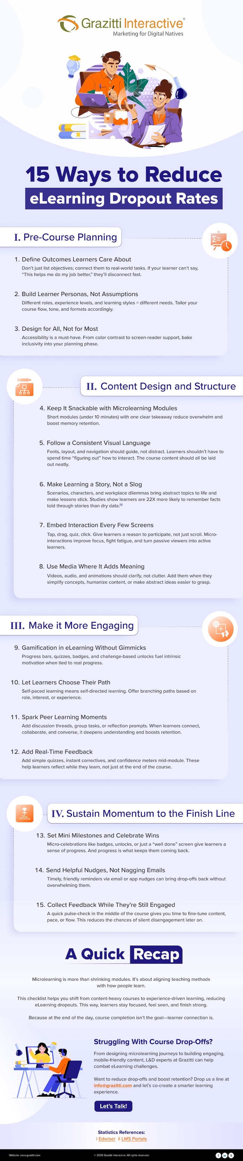 An infographic (below) from Grazitti Interactive explores how to reduce e-learning dropout rates.