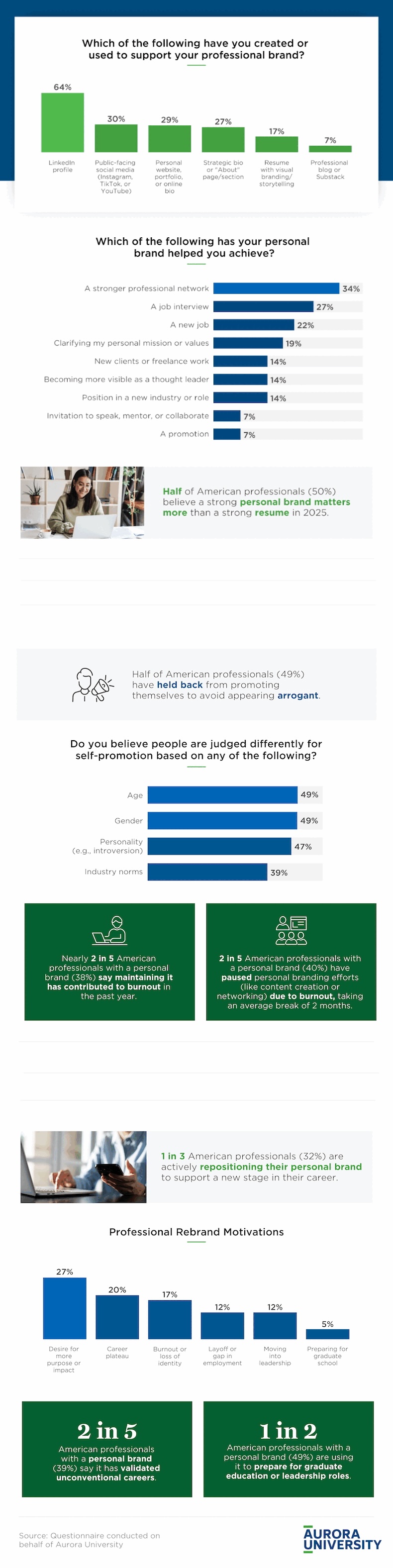 It covers how professionals are building their personal brands, why they decide to reposition their personal brands, and why they sometimes hold back on promoting themselves.