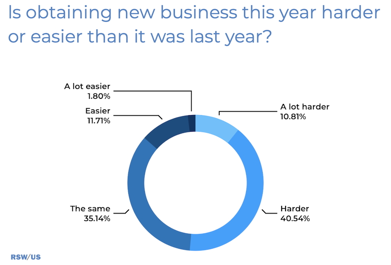 Most respondents (51%) say obtaining new business has been harder this year compared with last year.