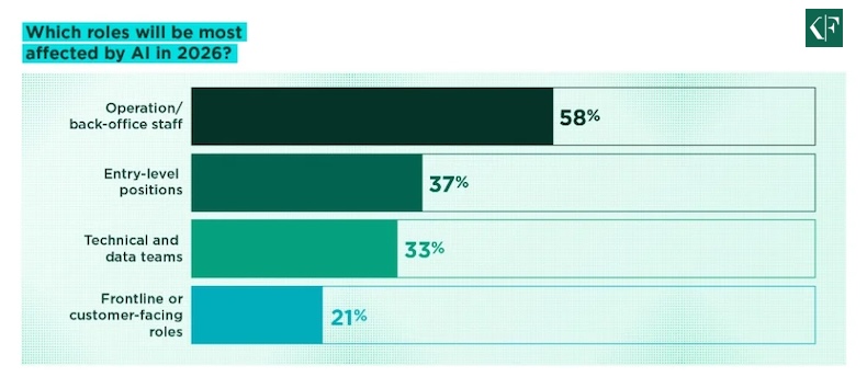 Talent acquisition leaders say the roles they expect to be most affected by AI in 2026 are operations/back-office staff and entry-level positions.