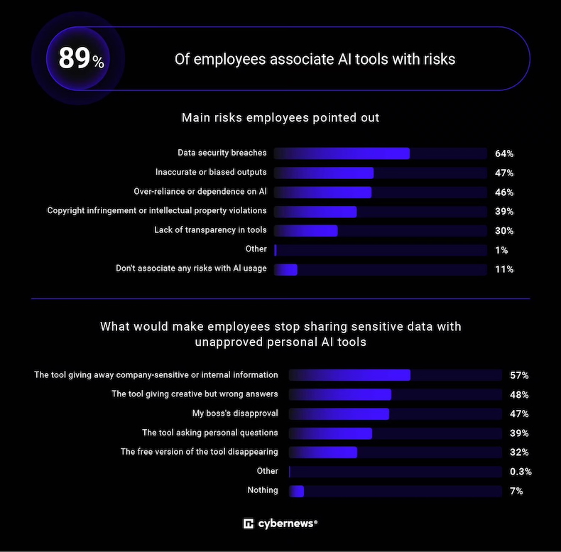 Some 89% of respondents say they're aware that using AI tools for work comes with risks.