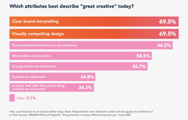Respondents say the top qualities of great digital ad creative are clear brand storytelling and visually compelling design.