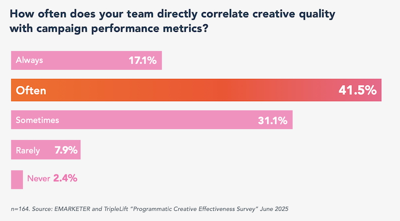 Some 71% of marketers surveyed say evaluating or improving creative effectiveness has become more important over the past year. However, only 59% say they always or often tie creative quality to performance metrics.